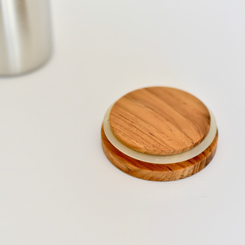 蓋のチーク材は無垢板、無染色のため木目、白太(白い部分)、節など個体差があります。製品の仕上がりには若干の個体差があることをご理解下さい。又、パッキンに黄ばみが生じる場合もありますが、これは木の色の影響を受けたもので使用に問題はございません。(不良ではありません)